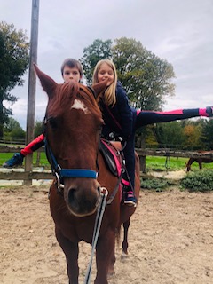 Wir voltigieren im Gruppen-Unterricht. Der Kurs findet jeden Dienstag von 16-17Uhr statt.